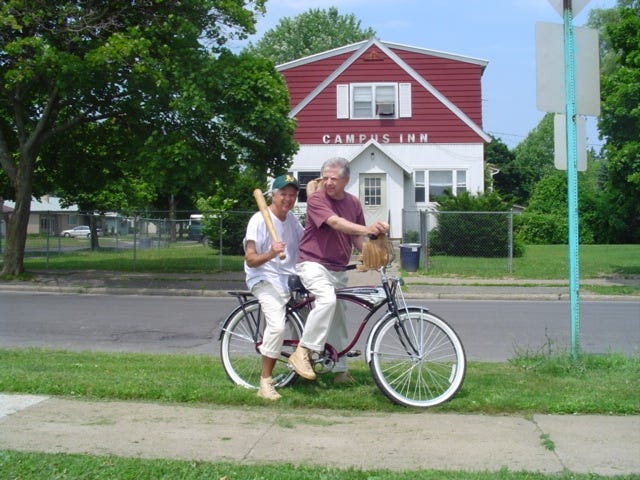 Thumb a ride way north on Genesee with our ball mitts by our side