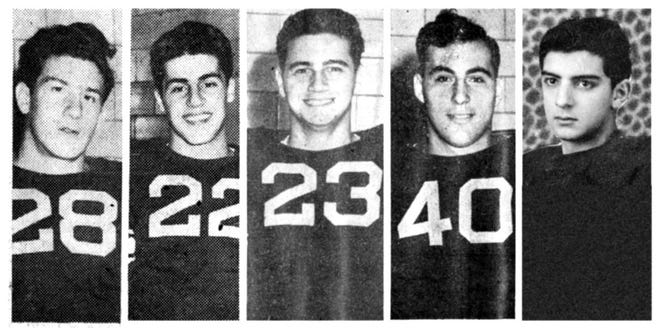 Future American League umpire, Alex Salerno was known only as "Bobie" and Boston Red Sox 2nd baseman Ted Lepcio was called "Chubby" in high school. Catcher Tony "Bull" Fabbio completes the Prox baseball trio.